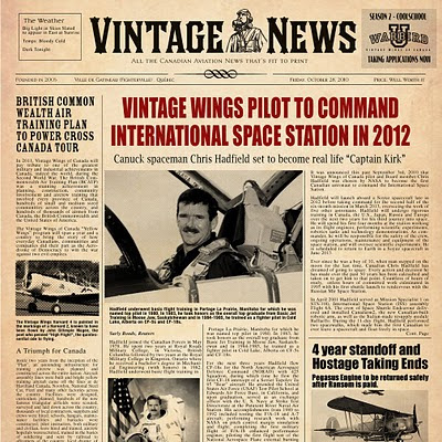 So, as the news boys of a bygone era would have said... "EXTRA! EXTRA!, EXTRA!... Read all about it!!!.. Vintage Wings Pilot to Command Space Station.... Vintage Wings Founder Seen in Red Flightsuit!!... Grandson of Canada's First Pilot Joins Air Force.